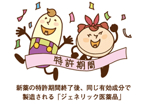 新薬は、研究・開発から発売までに10~15年くらいの長い期間と、数百億円もの膨大な投資が必要といわれています。そのため、特許を出願してから 20~25年間は、開発した製薬会社が独占的に製造・販売することができます。しかしその特許期間が終了すると、他の製薬会社が厚生労働省の承認を得て、同じ有効成分の薬を製造・販売することができるようになります。これらの医薬品を総称して「ジェネリック医薬品」と呼びます。